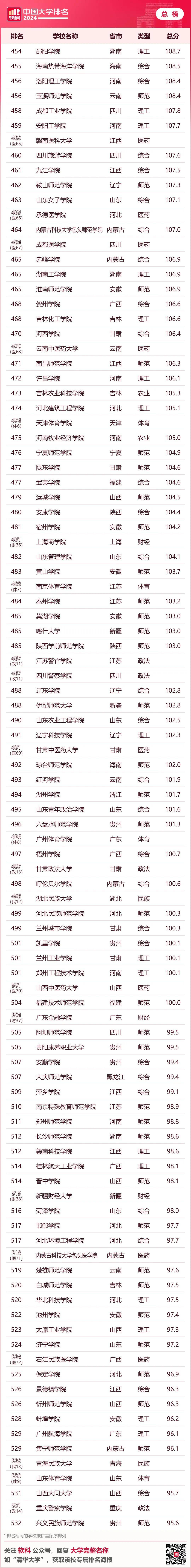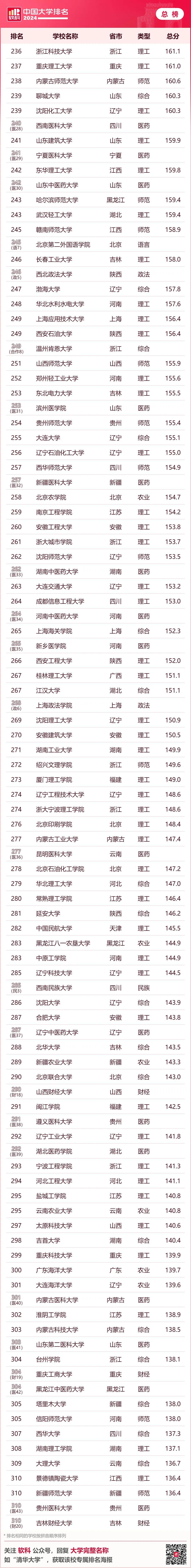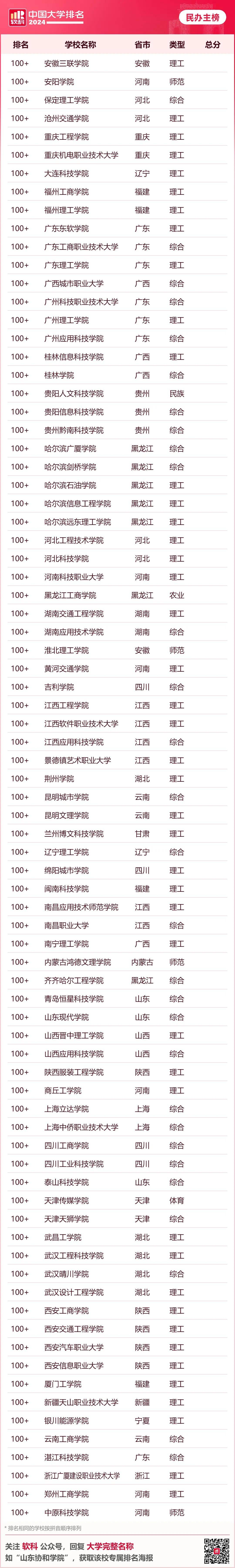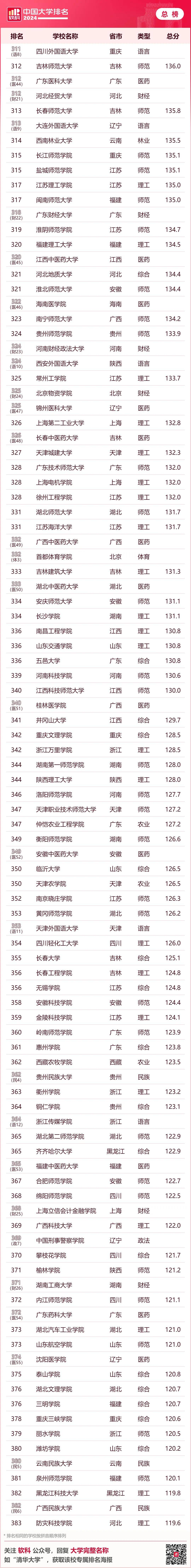 · 软科中国民办语言类高校排名· 下表为综合性大学排名 6个单科性大学和合作办学大学的 全国参考排名总榜单 ↓↓↓ · 软科中国大学排名(总榜)·