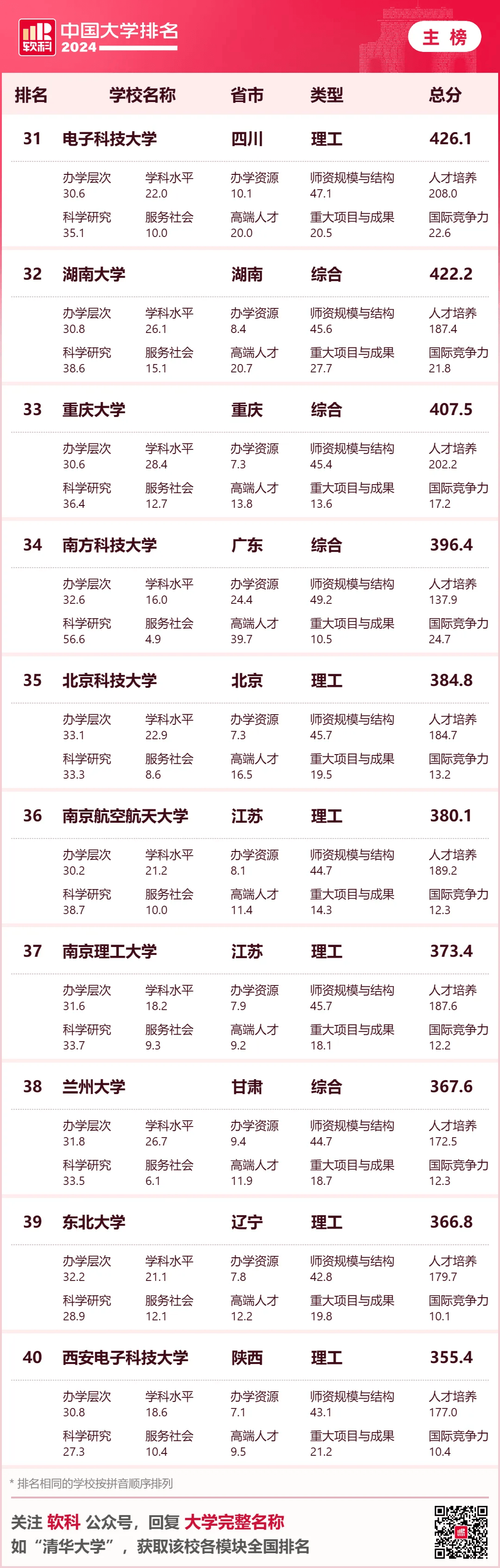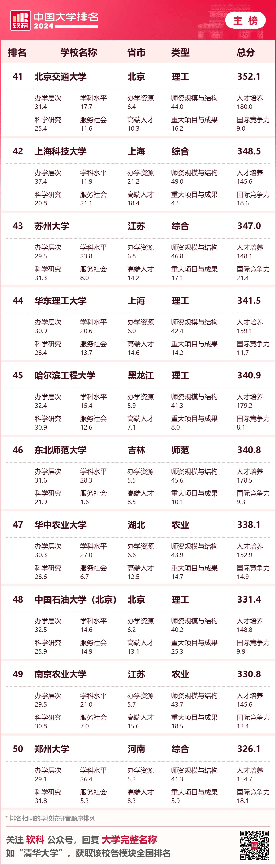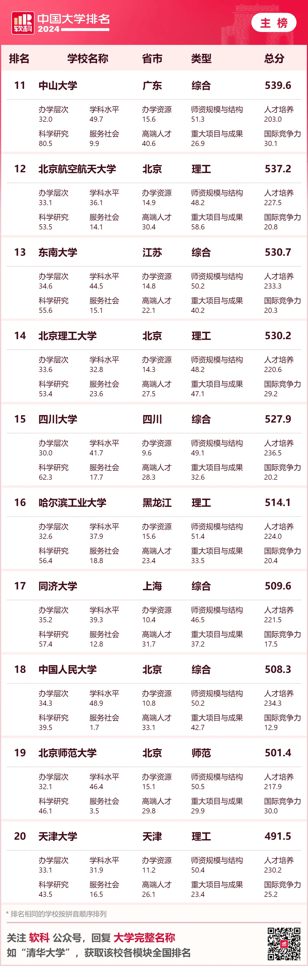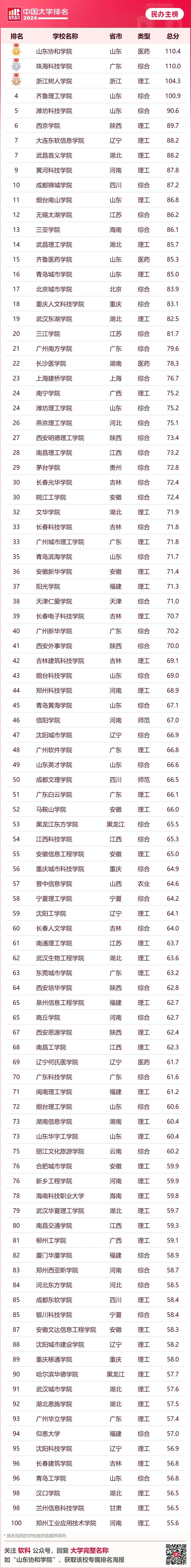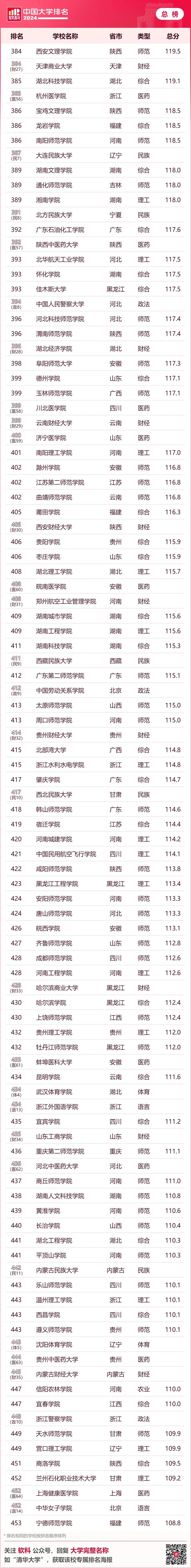 · 软科中国民办语言类高校排名· 下表为综合性大学排名 6个单科性大学和合作办学大学的 全国参考排名总榜单 ↓↓↓ · 软科中国大学排名(总榜)·