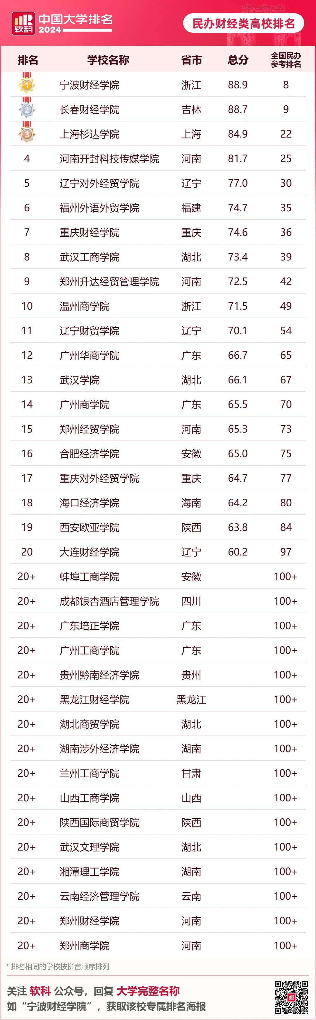 · 软科中国民办财经类高校排名·