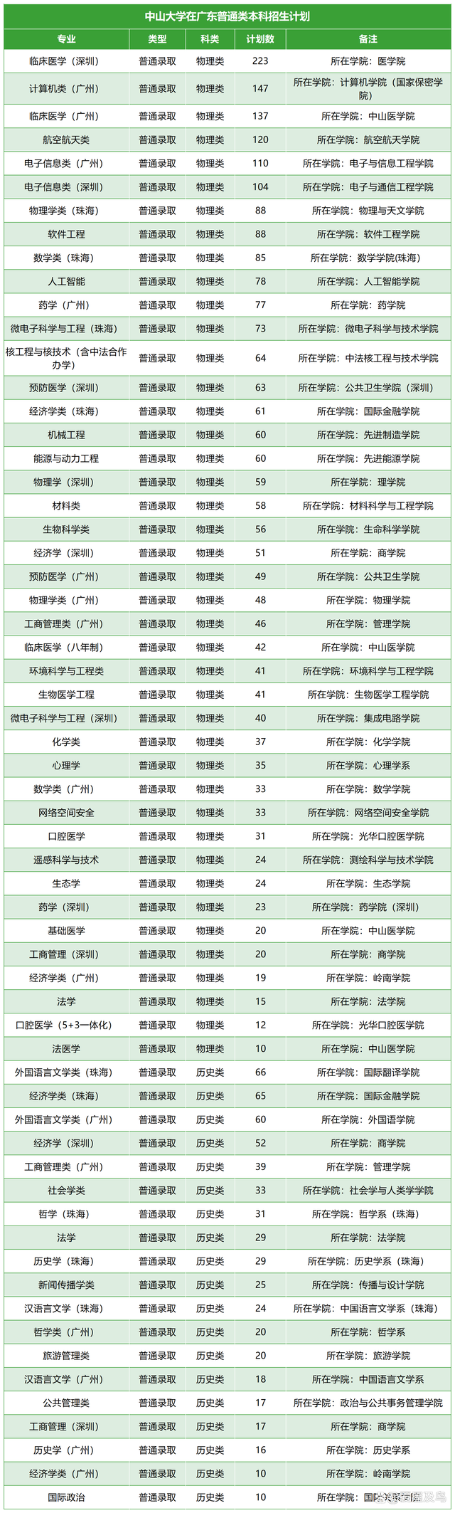 中山大学不仅是华南地区综合实力最强的高校,而且也是本科招生规模最大的双一流院校之一。目前,学校已经公布了2022年高考本科招生计划。 中山大学公布的资料显示,今年面向全国各省区市计划招收全日制普通本科生7730人,涵盖普通类、艺术类、专项计划、强基计划等多个招生类型。 中山大学在广东本地投放了3630个招生名额,其中普通类考生占3086人,综合评价录取考生占495人,艺术类考生31人,高校专项计划考生17人,保送录取运动员1人。 中山大学本科招生计划中的本地生占比在47%左右,这在985高校中绝对名列前茅。985高校都是部属高校,大多数对本地生比例有严格的限制。据统计,在30多所985高校中,本科生本地生占比在30%以上的不超过5所。而除了中山大学以外,广东的另一所985高校华南理工大学本地生占比也是相当的高,甚至达到了50%。 中山大学和中南大学的本科招生规模相对比较接近,但是两校在招生计划的安排上存在着较大差异。中南大学本科招生超过百人的省份多达26个,其中有8个省份招生计划在300人以上,而中山大学招生计划超过百人的省份只有19个,除了广东以外,没有一个省份招生人数在300人以上。中山大学本科招生计划中的主要生源地还有河南和广西,分别投放了257个、230个招生名额。 高校本地生占比和高考报名人数的多少、生源质量的高低等都有很大关系。广东本身人口众多,高考报名人数多年位居全国前三,因此中山大学、华南理工大学虽然是教育部直属高校,但在招生计划的安排上会更大幅度的向本地倾斜。像山东的高考报名人数也很多,山东大学的本地生占比也在30%以上。而像上海、北京这些高考报名人数相对较少的省份,部属高校本地生占比是很低的,一般在10%—20%左右。 去年高考,中山大学几乎把所有专业打包为大类进行招生,结果某些专业大类招生爆冷,像数学类(数学实验班)去年在陕西录取的最低分仅为499分,物理学类(物理实验班)在陕西录取的最低分只有444分。 而今年中山大学在招生专业的安排上有很大的变化,明确按院系专业(类)招生的,高考录取确定主修专业,大一至大四均可申请转专业,还可进行多种微专业、辅修专业、辅修学位、交叉专业学习。 分校区来看,珠海校区专业往年的录取分数线一般都要低于广州和深圳校区。中山大学普通类本科招生专业中,临床医学(深圳)、计算机类(广州)、临床医学(广州)、航空航天类、电子信息类(广州)、电子信息类(深圳)等6个专业在广东招生计划超百人,比不少省份总的招生人数还要多。 |